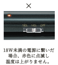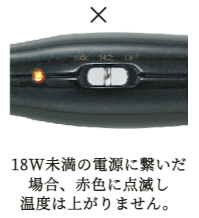 ※18W未満の電源では、温度が十分に上がらず、ランプが赤色に点滅します。